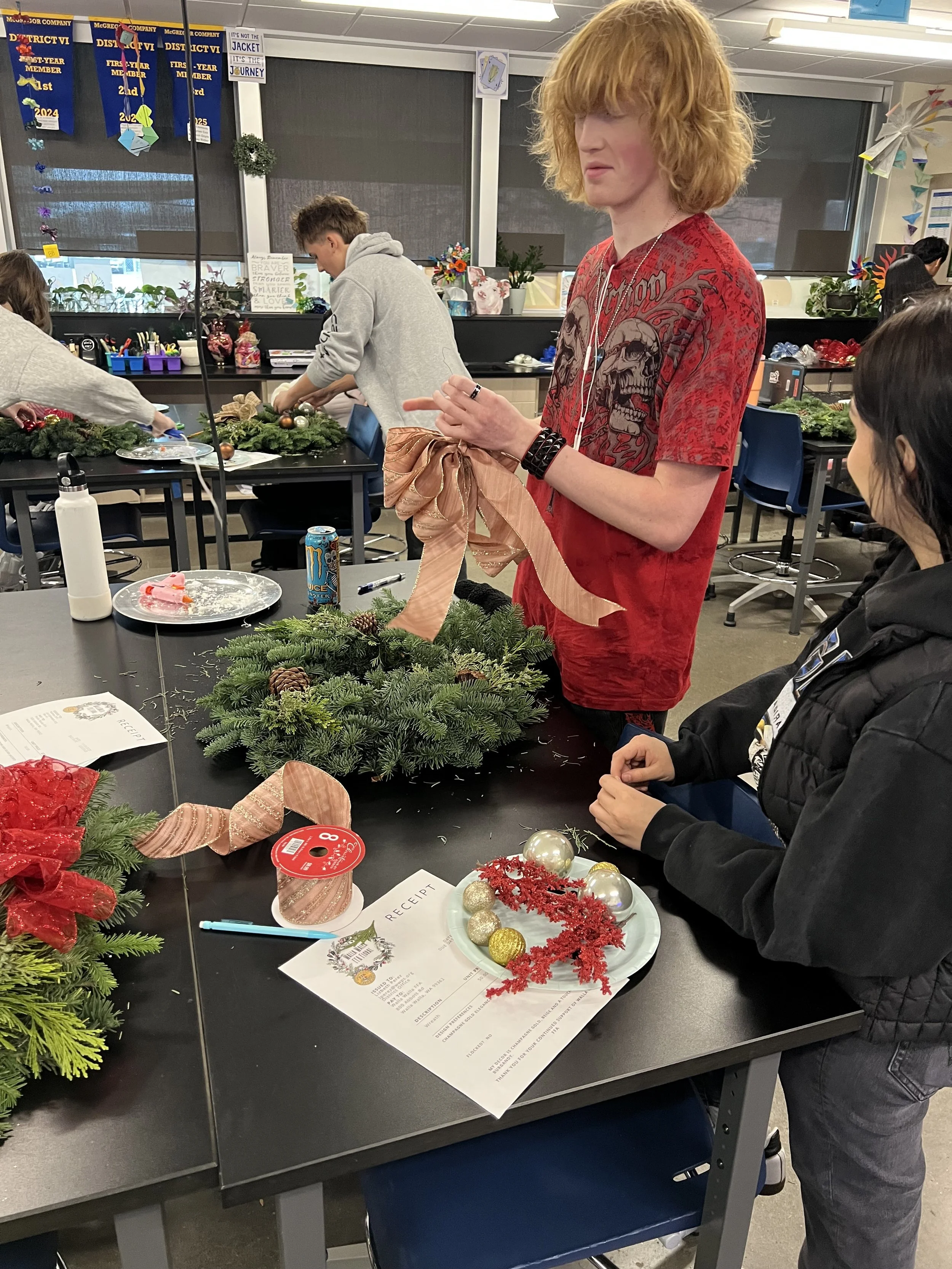 WaHi FFA Floral students decorated wreaths for the holidays. Students created amazing work while gaining real-world experience following orders and designing to the customers’ requests.